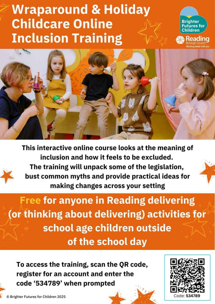 We are delighted to be working in partnership with Families First to offer all Reading Wraparound and Holiday Childcare providers access to some free online training which supports inclusion. We are offering free training for anyone delivering (or thinking about delivering) activities for school age children outside of the school day. This could include breakfast clubs, afterschool clubs, holiday clubs, Holiday Activities and Food(HAF) providers, and short break providers too.